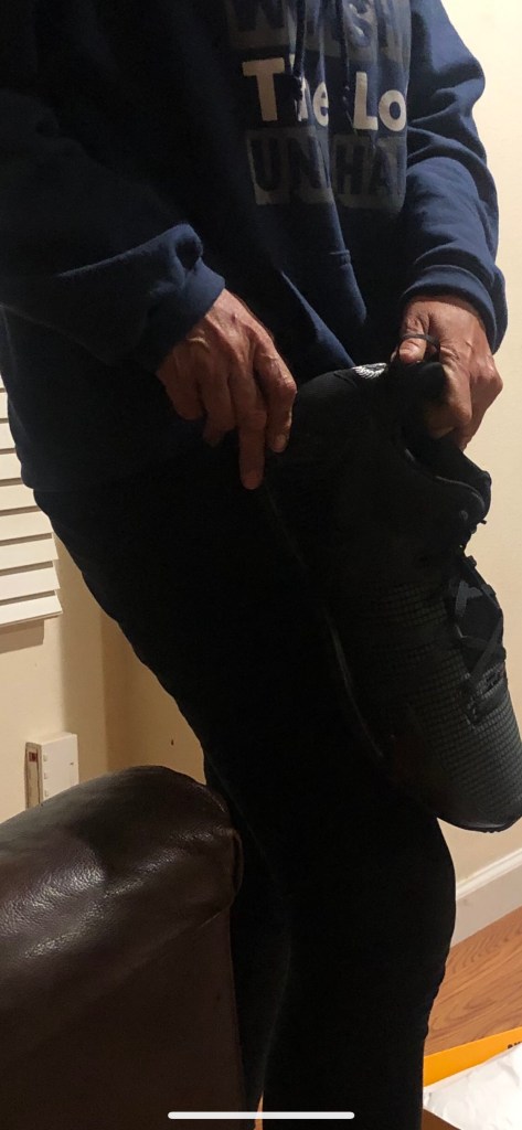 I was sitting talking to my baby brudder and I said, “I’m so high right now it’s crazy” I had just got here and couldn’t sit down but could barely walk. I praise Him. I felt like I was walking on clouds haha. My brother married a great woman and oh my can she cook. Dinner was fire! Caleb’s birthday. My nephew’s a little over 7 ft and he got new shoes and these shoes are the length of my femur lol. a size 18.